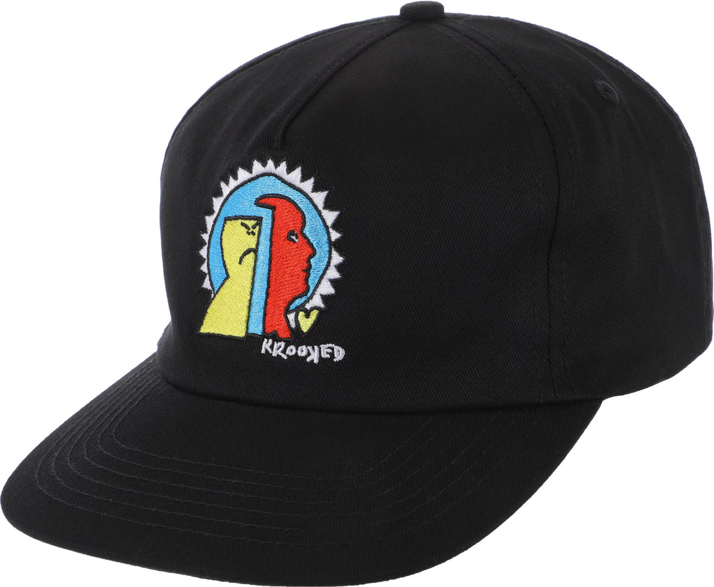 The Krooked Mad Back Snapback Black has the following specifications:Mid profile unstructured 5 panel cotton twill snapback hat with direct embroidery and flag label.