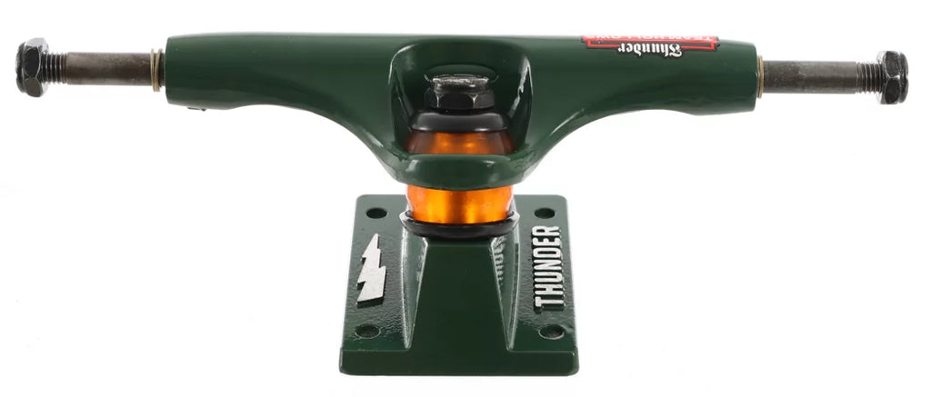 Unleash the beast with Thunder Screaming Shadowhorn Hollow Trucks! These trucks are engineered to dominate, combining legendary lightweight durability with an aggressive edge. Experience the same lightning-quick turn response Thunder is known for, now with a fierce new attitude. Each set features a hollow axle and kingpin to shed weight without compromising strength, while forged baseplates provide superior impact resistance and resilience compared to standard cast options. If you're looking for trucks that are as tough as they are nimble, and scream personality with every grind, the Screaming Shadowhorn Hollow Trucks are your weapon of choice. Sold as a set of two in multiple axle sizes, get ready to shred harder and faster.